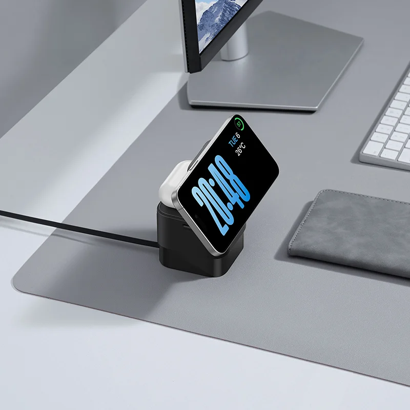 Ładowarka magnetyczna Baseus 2w1 to idealne rozwiązanie dla osób, które potrzebują ładować jednocześnie kilka urządzeń. Dzięki możliwości jednoczesnego ładowania trzech urządzeń, w tym Apple Watch, zyskujesz wygodę i oszczędność czasu. Wbudowany, rozwijany kabel USB-C sprawia, że ładowarka jest łatwa w transportowaniu i oszczędza miejsce w torbie czy plecaku.