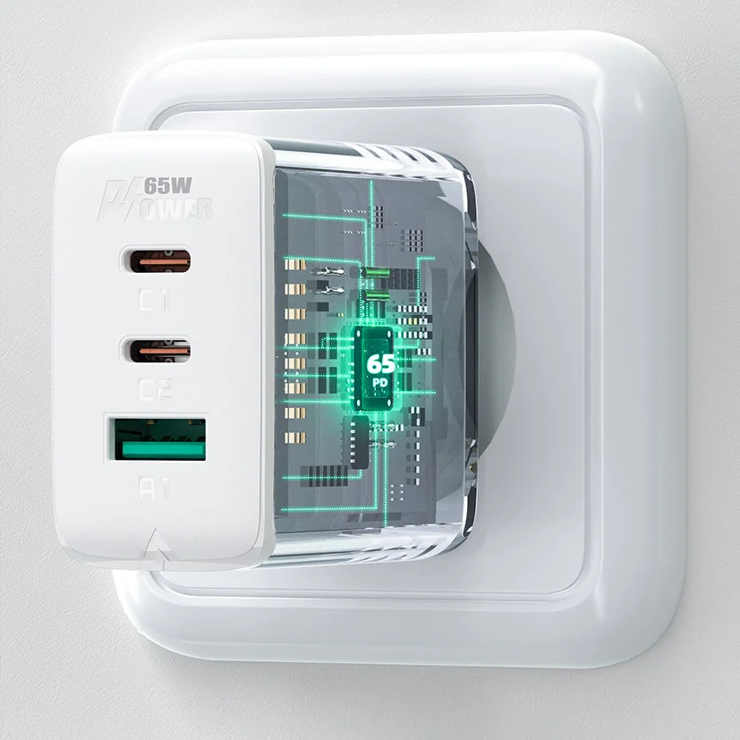 2w1 Ładowarka sieciowa 2x USB-C USB 65W z kablem USB-C to innowacyjne rozwiązanie dla osób poszukujących wydajnej i funkcjonalnej ładowarki. Dzięki temu produktowi możesz szybko naładować nawet dwa urządzenia jednocześnie, co czyni go idealnym towarzyszem zarówno w domu, jak i w biurze.