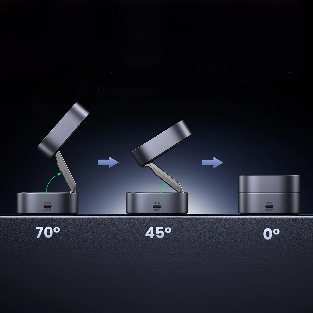 Ładowarka indukcyjna Ugreen W526 to idealne rozwiązanie dla osób szukających wygody i funkcjonalności. Dzięki możliwości jednoczesnego ładowania telefonu, słuchawek oraz urządzeń z portem USB-C, zyskujesz na efektywności i oszczędności miejsca. Wbudowane magnesy zapewniają stabilność, a różne pozycje ładowania zwiększają komfort użytkowania.