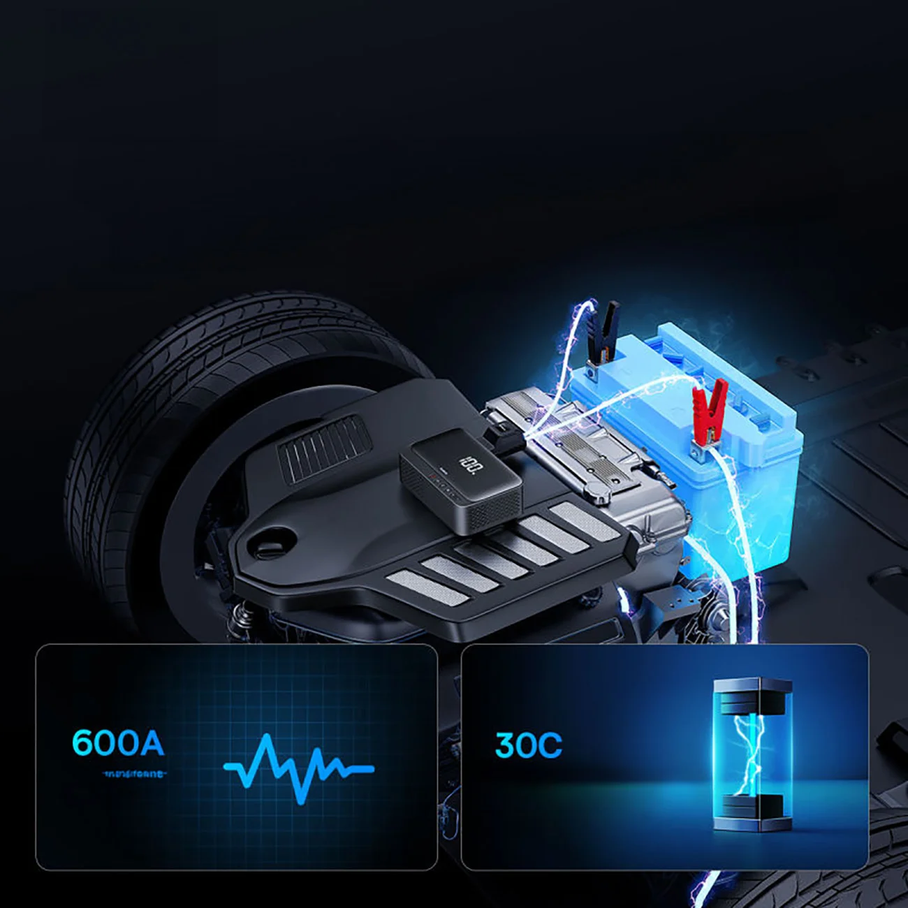 Jump starter Baseus Super Energy to wszechstronne urządzenie, które sprawdzi się w każdej sytuacji awaryjnej. Dzięki swoim funkcjom, takim jak rozruch, pompowanie, oświetlenie i ładowanie, będziesz zawsze przygotowany na nieprzewidziane okoliczności.