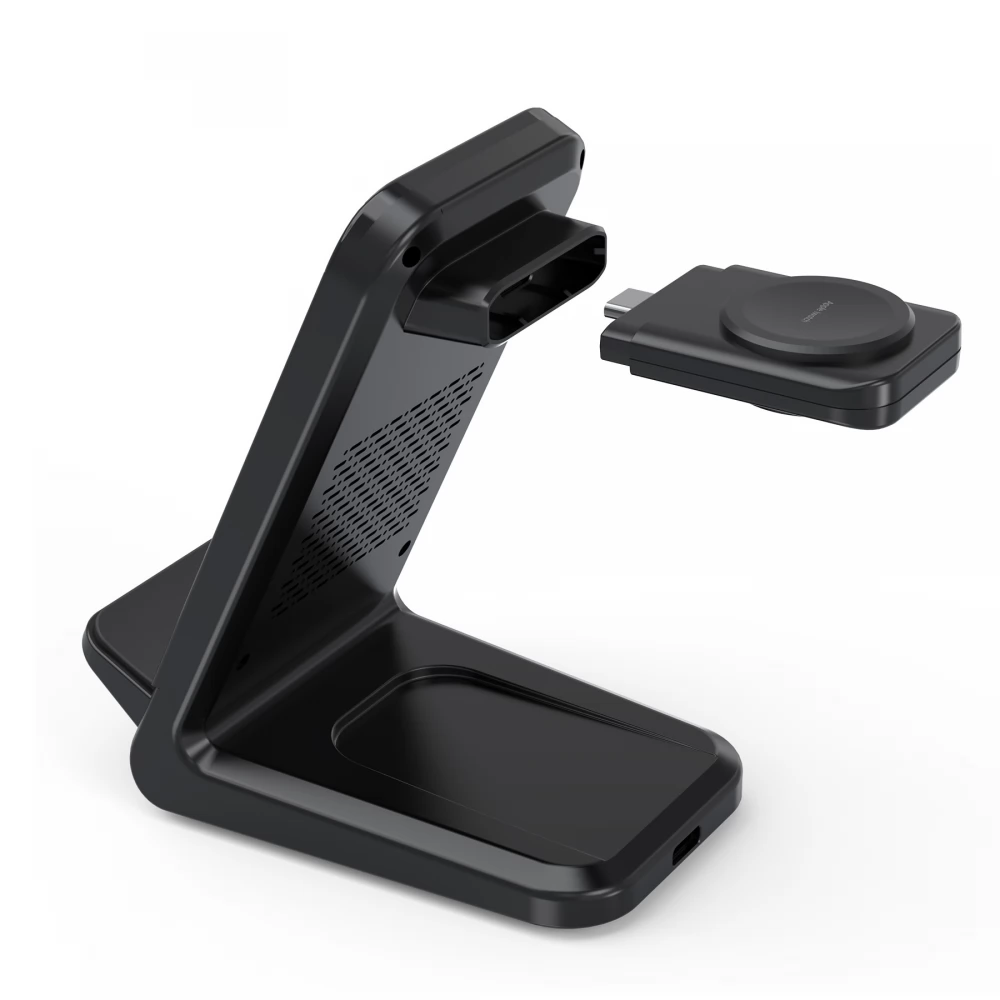 4w1 Stacja ładująca indukcyjna Qi 15W to nowoczesne rozwiązanie zaprojektowane z myślą o osobach ceniących sobie wygodę i efektywność. Model Choetech T608 łączy w sobie elegancję oraz funkcjonalność, umożliwiając jednoczesne ładowanie aż trzech urządzeń – smartfonów, smartwatchów oraz słuchawek.