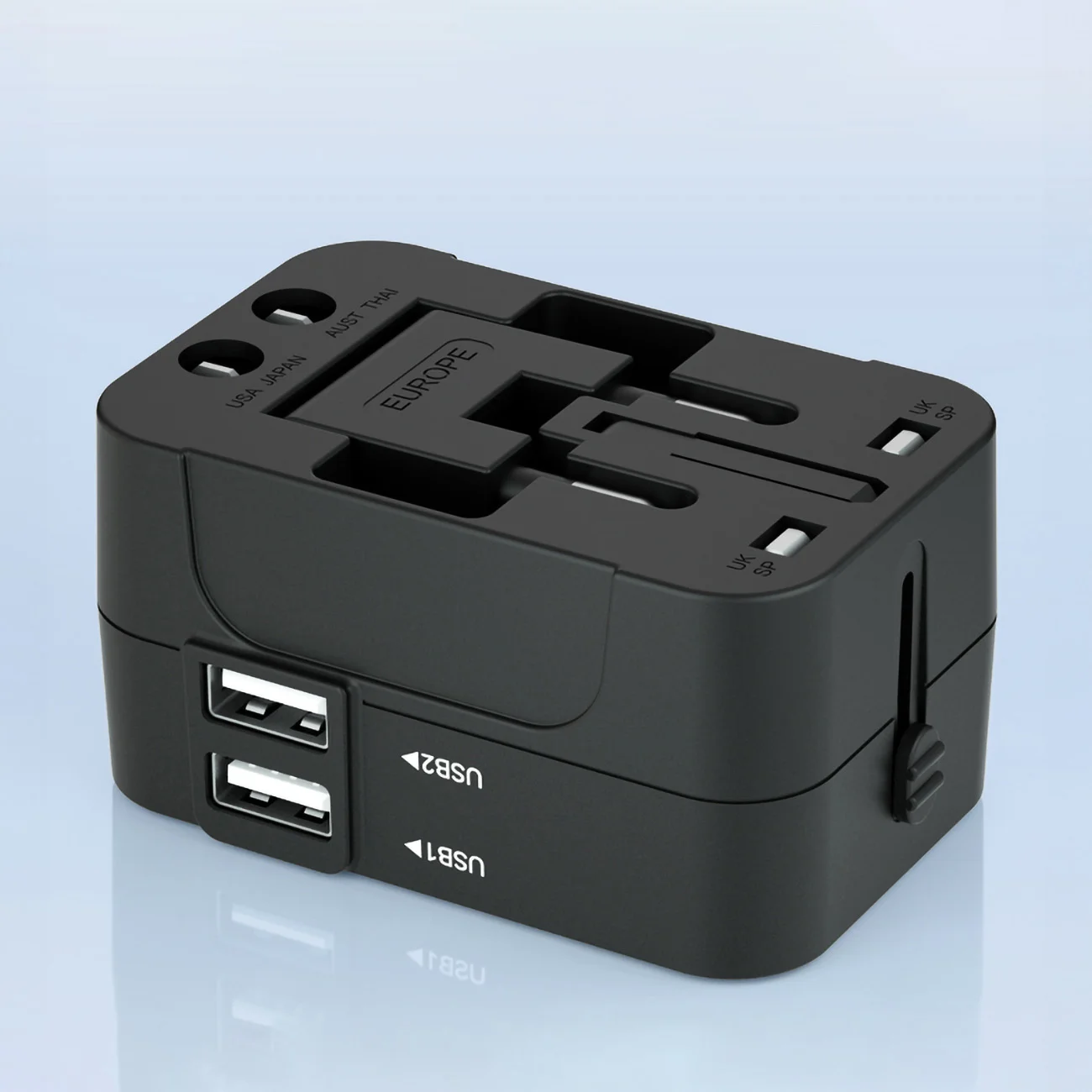 Adapter obsługuje standardy elektryczne dla ponad 150 krajów, w tym UE, US, AUS oraz UK, eliminując potrzebę posiadania wielu różnych adapterów. To innowacyjne rozwiązanie gwarantuje wygodę podczas każdej podróży.