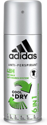 Antyperspirant w sprayu Adidas Cool & Dry 6 in 1 to idealne rozwiązanie dla aktywnych mężczyzn. Dzięki swojej formule zapewnia skuteczną ochronę przed potem przez 48 godzin, co pozwala zachować uczucie suchości nawet podczas intensywnego wysiłku. Produkt nie tylko chroni przed potem, ale także zapobiega powstawaniu białych smug i żółtych plam na odzieży. Dodatkowo, jego składniki przeciwdziałają nieprzyjemnym zapachom oraz rozwojowi bakterii, co pozwala cieszyć się świeżością przez cały dzień.