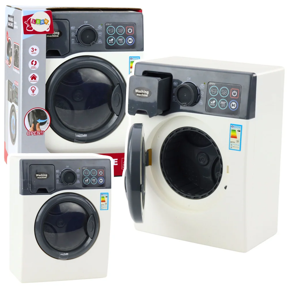 Pralka Zabawkowa Dla Dzieci Elegancka Światła Dźwięki Obrotowy Bęben Biała