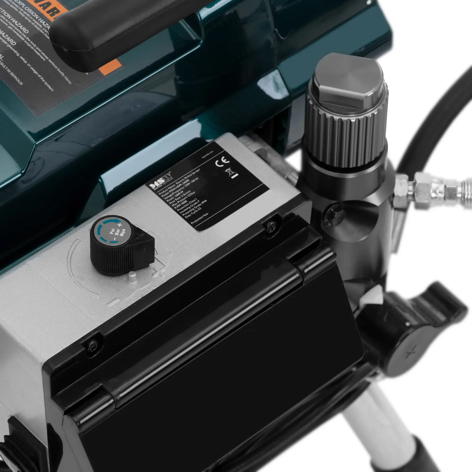 Urządzenie wyposażone jest w bezszczotkowy silnik o mocy 2600 W, który pracuje z prędkością do 5000 obr./min. Dzięki temu agregat rozprowadza maksymalnie 3,2 litra farby na minutę w postaci delikatnej mgiełki. Możliwość ustawienia ciśnienia do 227 barów pozwala na dostosowanie pracy agregatu do konkretnego projektu i rodzaju farby.