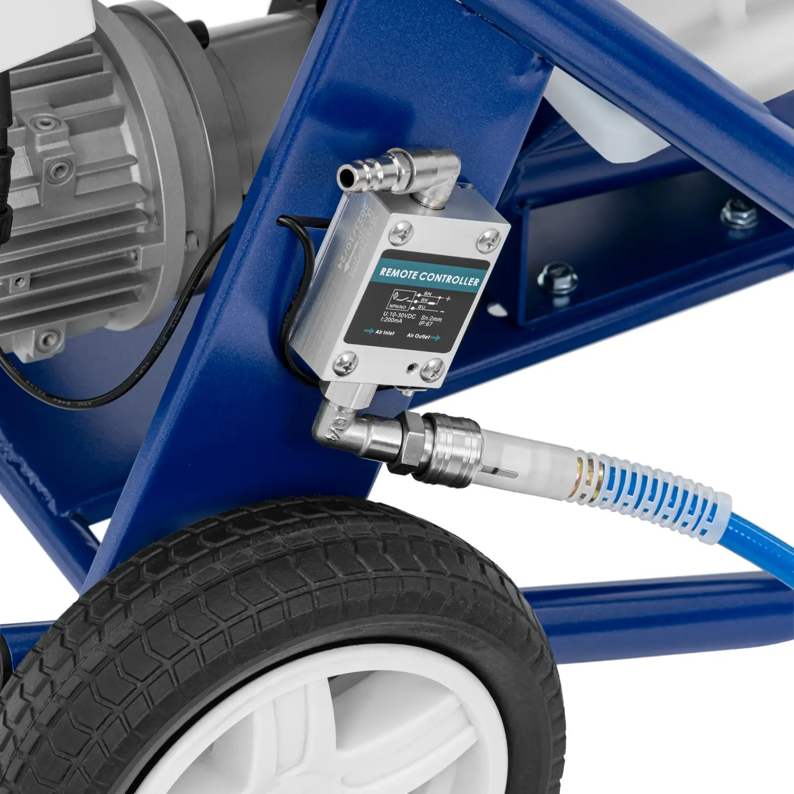 Agregat osiąga najlepsze wyniki z materiałami o ziarnistości do 6 mm. Zbiornik o pojemności 40 litrów umożliwia długotrwałą pracę na dużych powierzchniach, przy przepływie wynoszącym 15 l/min. Długi wąż o długości 7,5 m zapewnia komfort podczas pracy, a dwa kółka ułatwiają transport urządzenia w miejscu użytkowania.