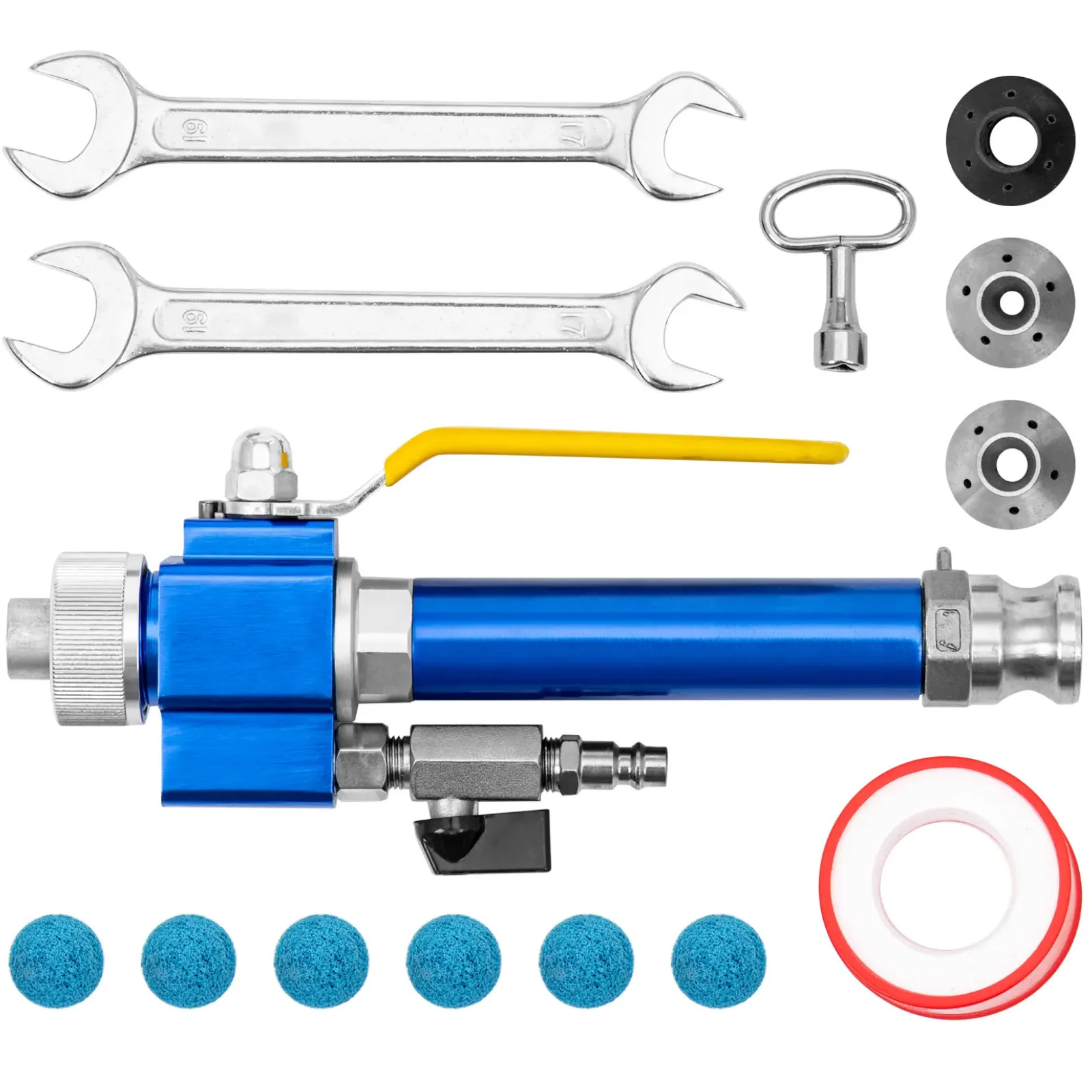 Obsługa agregatu jest prosta i intuicyjna. Wystarczy podłączyć go do sprężarki i ustawić odpowiednie ciśnienie za pomocą reduktora powietrza. Czytelny panel sterowania pozwala na dostosowanie kierunku obrotów oraz prędkości wirnika, co jest kluczowe dla uzyskania optymalnych rezultatów w zależności od używanego materiału i ilości wody.