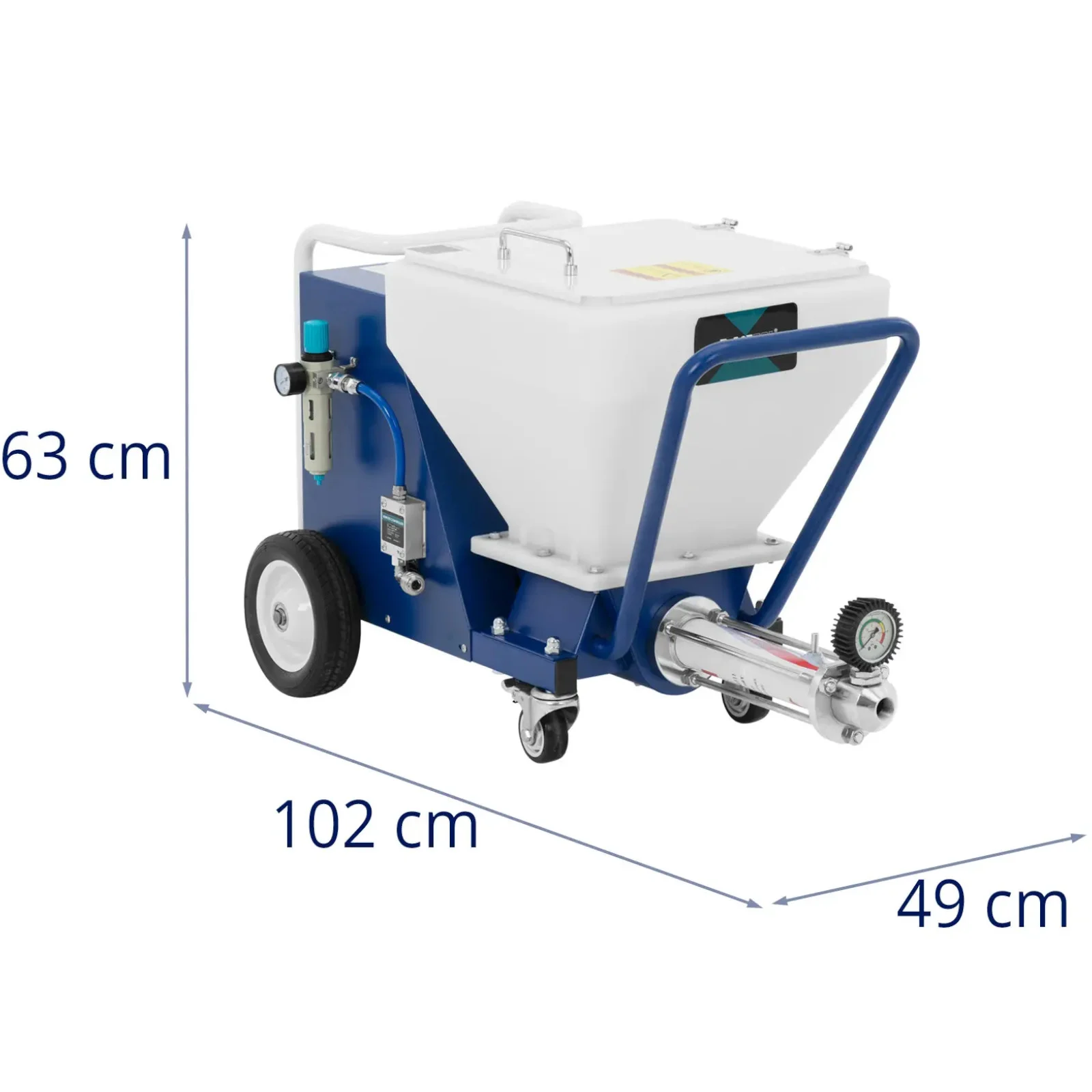 Agregat tynkarski to idealne narzędzie do szybkiego i efektywnego nakładania tynku na ściany. Dzięki maksymalnemu ciśnieniu roboczemu wynoszącemu 30 bar oraz przepływowi 18 l/min, urządzenie zapewnia równomierne rozprowadzenie zaprawy, co znacząco ułatwia pracę.