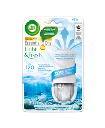 Wprowadź do swojego wnętrza relaksującą atmosferę z Air Wick Morska Mgiełka i Błękitne Minerały. Ten odświeżacz powietrza inspirowany nadmorską świeżością łączy subtelne nuty morskiej bryzy z delikatnym akcentem minerałów, tworząc poczucie czystości i świeżości. Dzięki formule wzbogaconej naturalnymi olejkami eterycznymi, Air Wick skutecznie neutralizuje nieprzyjemne zapachy, zapewniając do 120 dni świeżości*.