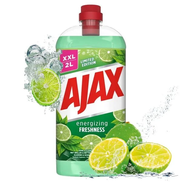 Ajax Energizing Freshness to skuteczny środek czyszczący, który zapewnia doskonałą czystość i świeżość w Twoim domu. Dzięki zaawansowanej formule efektywnie usuwa brud, tłuszcz i inne zabrudzenia, pozostawiając powierzchnie lśniące i pachnące na długo.