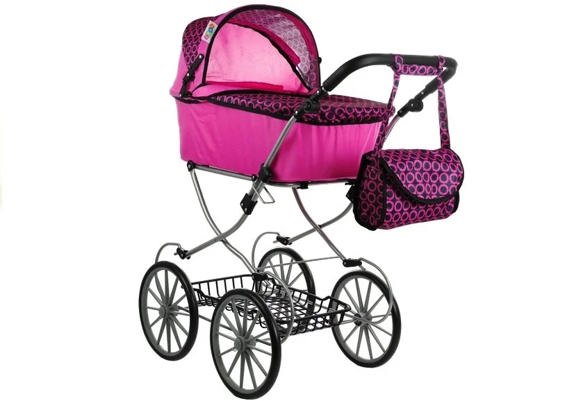 Wózek dla lalek Alice Retro, Duży, Głęboki, Torba