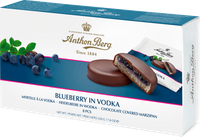 Odkryj smakowite czekoladki Anthon Berg Blueberry in Vodka. To duńskie słodycze łączą w sobie marcepan oraz półpłynne nadzienie z intensywnym smakiem borówek w wódce. Całość otulona jest wysokiej jakości gorzką czekoladą, co sprawia, że każda czekoladka to prawdziwa uczta dla zmysłów.
