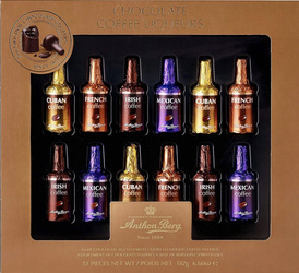 Anthon Berg Chocolate Coffee Liqueurs to wyjątkowa kolekcja czekoladowych likierów, które łączą w sobie belgijską czekoladę oraz intensywny smak aromatycznej kawy. Każda czekolada to małe dzieło sztuki, które oferuje eleganckie i wykwintne doznania smakowe. Delikatna czekolada otacza płynny likier, tworząc harmonijną kompozycję idealną na chwile relaksu oraz wyjątkowe okazje.
