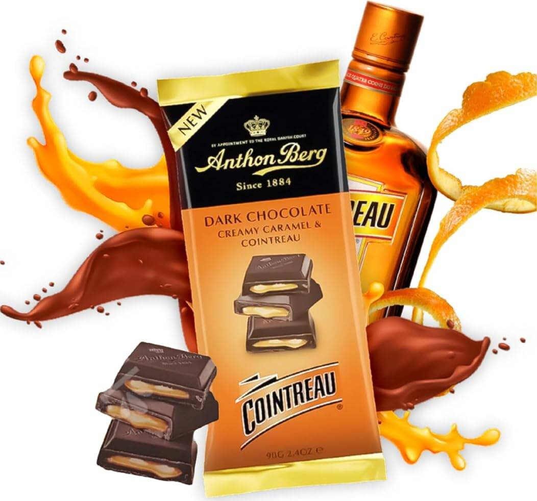 Odkryj wyjątkowy smak czekolady Anthon Berg Dark Chocolate Caramel&Cointreau. Ta elegancka czekolada łączy w sobie intensywną ciemną czekoladę z aromatycznym karmelem i likierem pomarańczowym Cointreau. Kremowe nadzienie doskonale współgra z wyrazistą czekoladą, oferując niezapomniane doznania smakowe.