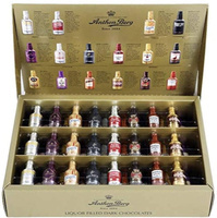 Produkt zawiera różnorodne likiery z renomowanych marek, umieszczone w eleganckim Złotym Pudełku. Każda butelka z czekolady to połączenie gorzkiej czekolady (50%) i syropu z alkoholi, takich jak The Famous Grouse, Cointreau, Drambuie, Jim Beam, Remy Martin, Canadian Club, koniak, whisky, rum, wódka oraz tequila. To idealna harmonia między intensywnością kakao a płynnym nadzieniem.