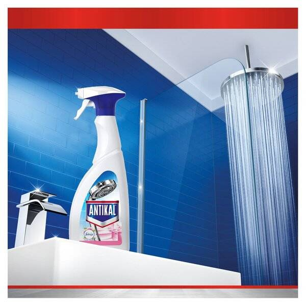 Wygodny spray o pojemności 700 ml pozwala na łatwe aplikowanie środka. Działa na stare przebarwienia oraz zacieki z mydła. W przypadku uporczywych plam, należy spryskać powierzchnię, pozostawić na 5 minut, a następnie zmyć wodą.
