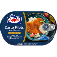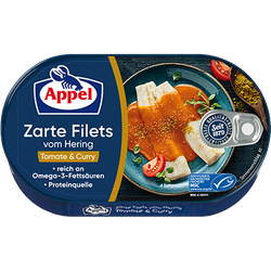 Delikatne filety śledziowe MSC uszlachetnione w delikatnym sosie pomidorowym z pikantnym curry.