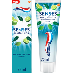 Aquafresh Senses Eucalyptus i Limonka to pasta do zębów, która zapewnia świeży oddech oraz wyjątkowy smak. Jej formuła łączy naturalne ekstrakty roślinne z wysoką zawartością soli mineralnej, co skutkuje efektywnym usuwaniem płytki nazębnej. Dzięki zawartości fluoru (1450 ppm) pasta dba o dokładne czyszczenie zębów, nie wpływając negatywnie na dziąsła.