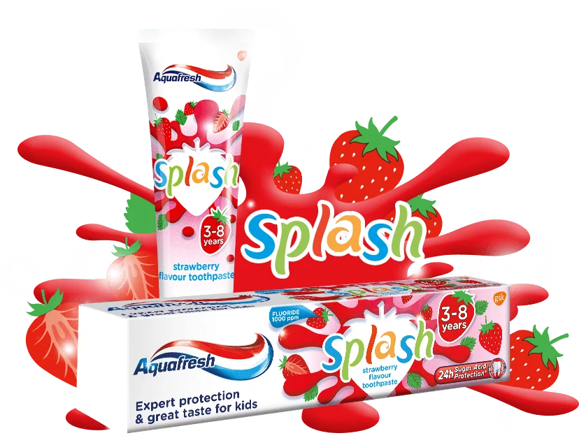 Zamów Aquafresh Splash Strawberry już dziś i zadbaj o zdrowy, silny uśmiech swojego dziecka. Długotrwała ochrona i świeżość w jednym!