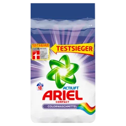 Proszek do prania Ariel Actilift Compact Color skutecznie usuwa plamy i głęboko czyści włókna tkanin. Dzięki temu Twoje ubrania wyglądają świeżo i pachną czysto. Działa już w temperaturze 30 °C, co czyni go idealnym wyborem dla kolorowych i czarnych ubrań.