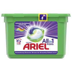 Ariel All-in-1 PODS Color to rozwiązanie, które łączy w sobie skuteczność i wygodę. Dzięki oddzielnym komorom, składniki aktywne uwalniają się w odpowiednim momencie, co zapewnia doskonałe rezultaty prania. Te kapsułki skutecznie zwalczają różnorodne plamy, a ich innowacyjna powłoka rozpuszcza się w kontakcie z wodą, co czyni je łatwymi w użyciu. Wystarczy jedna kapsułka na jedno pranie – umieść ją w bębnie pralki przed dodaniem ubrań.