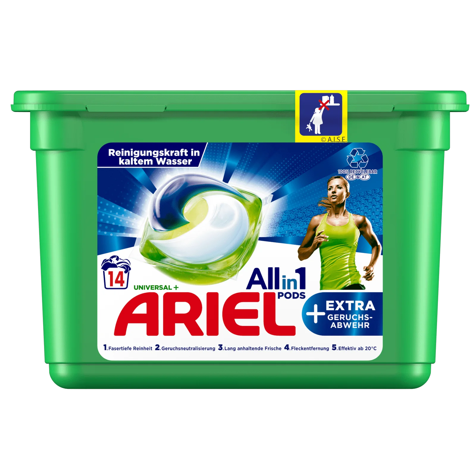 Odkryj skuteczność kapsułek do prania Ariel All in 1 Universal z dodatkową ochroną przed zapachami. Dzięki innowacyjnej technologii, kapsułki te skutecznie neutralizują nieprzyjemne zapachy podczas prania, co zapewnia długotrwałą świeżość Twojej odzieży. Idealne zarówno do sportowych ubrań, jak i do codziennych strojów, aktywują się podczas ruchu, oferując wyjątkową świeżość.