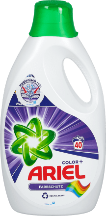 Ariel Color+ Flüssigwaschmittel to płynny detergent, który zapewnia promiennie czyste i świeże pranie już po pierwszym użyciu. Dzięki doskonałemu usuwaniu plam, nawet w niskich temperaturach, Twoje ubrania będą zawsze wyglądać jak nowe. Żel ten chroni kolory, dzięki czemu jaskrawość bieliźnie utrzymuje się na dłużej.