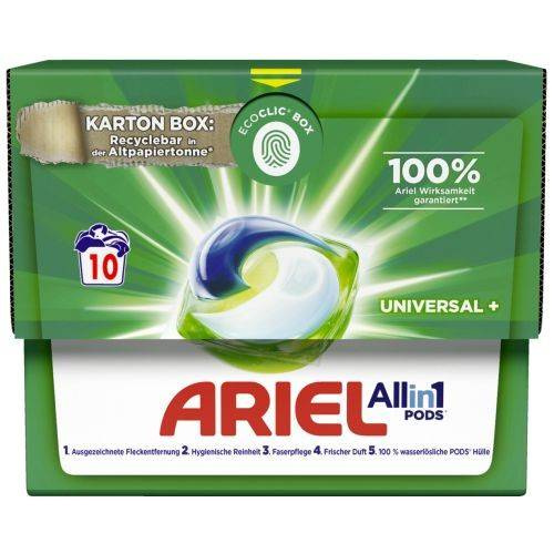 Odkryj uniwersalne kapsułki Ariel All-in-1 Universal+, które skutecznie usuwają plamy już w zimnej wodzie. Dzięki nim Twoje pranie będzie czystsze od pierwszego użycia. Jedna kapsułka zapewnia mocne czyszczenie, higieniczne działanie, pielęgnację włókien oraz świeży zapach. Dodatkowo, kapsułki są w 100% rozpuszczalne w wodzie, co zwiększa ich efektywność.