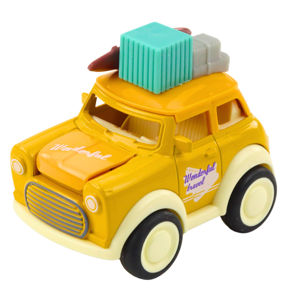 Metalowe autko wycieczkowe to wyjątkowa zabawka, która łączy solidne wykonanie z ciekawą funkcjonalnością. Karoseria wykonana jest z metalu, a elementy wykończeniowe z trwałego plastiku, co zapewnia odporność na intensywną zabawę oraz atrakcyjny wygląd inspirowany podróżniczym stylem retro.