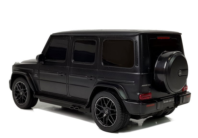 Przedstawiony model to MERCEDES AMG G63 w kolorze czarnym, idealnie odwzorowany z realistycznym odpowiednikiem. Wykonany w skali 1:24. Obudowa wykonana została ze wzmocnionego plastiku, gumowe koła imitują opony, a zawieszenie autka jest amortyzowane.