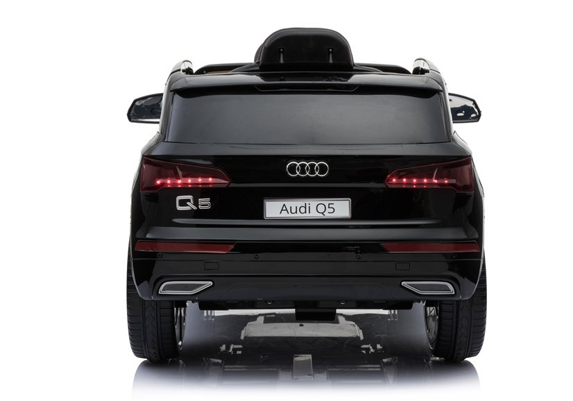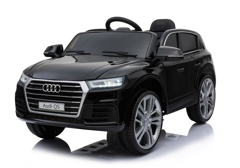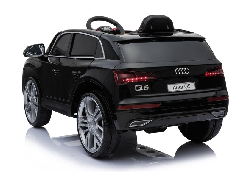Audi Q5 w czarnym kolorze posiada lakierowaną warstwę, która sprawia, że nie tylko błyszczy w słońcu i świetle — przyciągając wzrok wszystkich przechodniów i fanów marki Audi, a przede wszystkim dzieci, ale jest łatwy w utrzymaniu czystości oraz odporny na zarysowania. Auto wyposażone jest w miękki, podwójny fotel o szerokości 40 cm, który wykonano z czarnej skóry ekologicznej. Kanapa połączona z zagłówkami oddalona jest od pedału gazu o 26 cm, co gwarantuje komfort i wygodę małemu kierowcy, tym samym nie sprawiając mu kłopotu podczas obsługi autka. Na trójramiennej kierownicy oznakowanej logo producenta umieszczono dwa przyciski, których delikatne wciśnięcie aktywuje dźwięk klaksonu i melodyjek. Jest to bardzo ciekawe rozwiązanie, które podnosi poziom bezpieczeństwa dziecka na drodze.