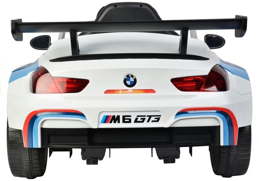 Sportowe BMW M6GT3 w kolorze białym przeznaczone jest dla wszystkich maluchów, których maksymalna waga to 35 kg. Auto posiada certyfikat CE, będący gwarancją spełnienia wymagań dyrektyw Nowego Podejścia Unii Europejskiej. Wszelkie materiały, które zostały użyte podczas produkcji pojazdu, posiadają atest, dzięki czemu maluch może bez najmniejszych obaw czerpać radość, jeżdżąc swą wystrzałową wyścigówką. Elektryczne auto wraz z akcesoriami zapakowane jest w oryginalny karton.