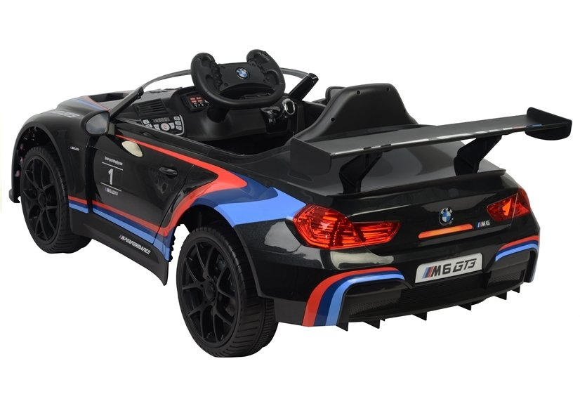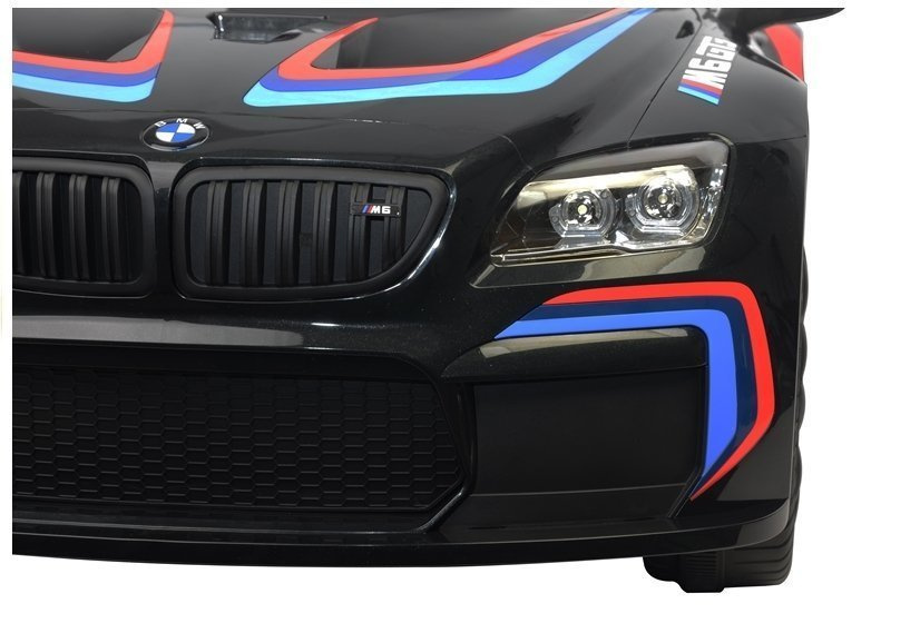 Wyścigowy model BMW M6 GT3 posiada oryginalną licencję koncernu Bayerische Motoren Werke AG, dzięki czemu jego konstrukcja została dopracowana w najmniejszym szczególe. Elementy takie jak ożebrowanie grilla, kołpaki czy ramki szyb i boczne otwory w karoserii pokryto oryginalnym lakierem przypominającym czarny chrom. Pod „maską” dziecięcego bolidu pracują dwa silniki o mocy 45W każdy, a także akumulator o mocy 12V7Ah. Podzespoły te pozwalają na beztroską jazdę w prędkości od 3 do 5 km/h. Auto osadzone jest na miękkich kołach EVA, które zapewniają duży komfort jazdy i dobrą przyczepność. Stawiamy na bezpieczeństwo i wygodę użytkowania, nie tylko maluchów, ale i opiekunów — podwozie dziecięcego BMW skrywa kółeczka i rączkę, co w dużej mierze ułatwia transport pojazdu akumulatorowego po zakończonej zabawie.
