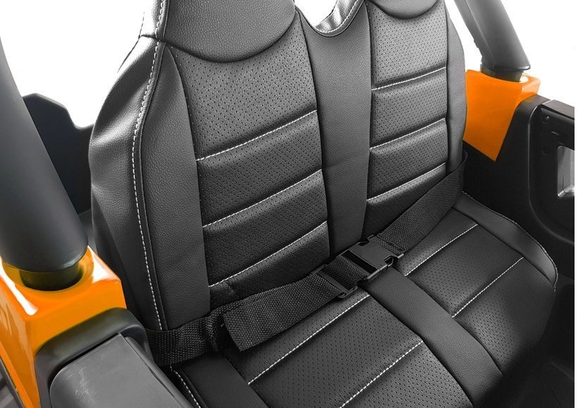 Autko na akumulator wyposażone jest w wejście USB i MP3, co umożliwia odtwarzanie ulubionych piosenek małego kierowcy. Dodatkowym atutem modelu jest wykonanie foteli z ekoskóry oraz silniki 4x45W.