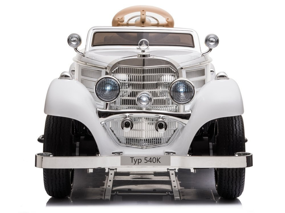 Zminiaturyzowana wersja retro Mercedesa to nie tylko fantastyczny wygląd. Auto pod swą „maską” ukrywa silniki 4x45W oraz akumulator 12V10Ah, dzięki którym kilkuletni kierowca może podróżować z prędkością od 5 do 7 km/h. Do zestawu dołączono innowacyjny pilot 2.4G, umożliwiający zdalne sterowanie autkiem. W budowie pilota umieszczono przyciski pozwalające na wybór kierunku: prawo/lewo, przód/tył, a także wybór prędkości oraz awaryjne, natychmiastowe zatrzymanie. Rozwiązanie to sprawia, że z Mercedesa 540K mogą korzystać także młodsze dzieciaki, jeżdżąc w sterowanym przez opiekunów pojeździe.