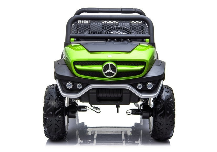 Zielone auto Mercedes Unimog zaprojektowano z dbałością o najmniejszy szczegół, co wpływa na pozytywne odczucia młodego rajdowcy. Trwała i masywna konstrukcja w połączeniu z wysokogatunkowymi materiałami odpowiadają za doskonałą zabawę przez długie lata oraz odporność na uszkodzenia. Atrakcyjność modelu podnoszą otwierane drzwi i amortyzatory, na których jest osadzony, dzięki czemu jazda po nierównych i wyboistych terenach będzie dużo przyjemniejsza i pełna przygód. Ten dziecięcy samochód akumulatorowy z pewnością sprosta oczekiwaniom młodych fanów motoryzacji. Dlaczego? Warto zwrócić uwagę na jego realny design, silnik 4x45W, akumulator 12V14Ah.