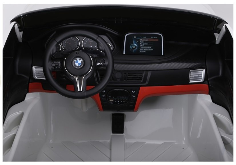 Wnętrze samochodu na akumulator BMW X6M z pewnością spełni nie tylko oczekiwania dziecka, ale i dorosłych fanów marki. Wszelkie elementy są połączeniem czerni z czerwonymi detalami, co wygląda fenomenalnie. Akcenty te pozwolą poczuć się każdemu maluchowi jak w prawdziwym samochodzie. Wrażenia te spotęguje miękka, podwójna kanapa o szerokości 55 cm, którą wykonano ze skóry ekologicznej, a także kierownica z przyciskami czy wyglądający jak prawdziwy drążek służący do zmiany biegów. Pedał gazu oddalony jest od siedziska o około 27 cm, co jest gwarancją komfortowej zabawy.