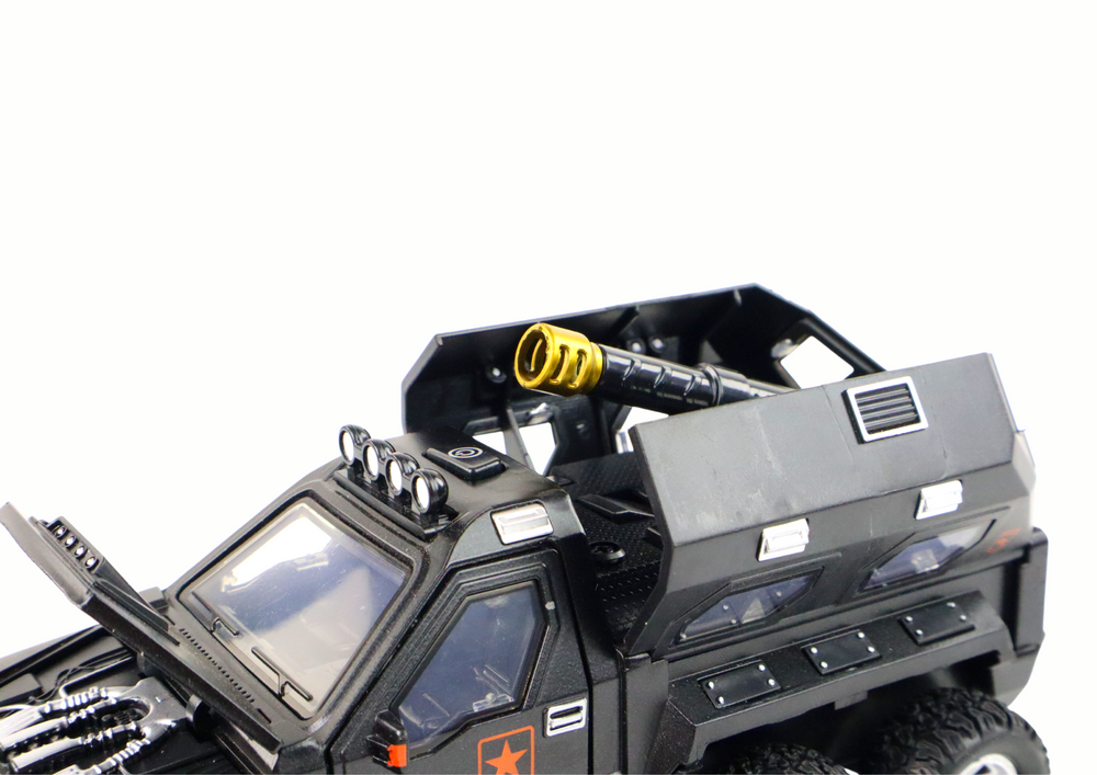 Auto posiada napęd frykcyjny, co sprawia, że łatwo można nim manewrować. Po naciśnięciu przycisku na górze pojazdu, drzwi otwierają się, a z górnej części pojazdu wysuwa się realistyczna armata. Towarzyszą temu efekty świetlne i dźwiękowe, które dodają emocji i realizmu.