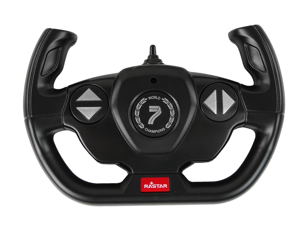 Zasilany pięcioma bateriami AA, ten samochód jest gotowy do zapewnienia emocjonującej rozrywki. Jego wymiary wynoszą: 47 cm x 11 cm x 16 cm. Możemy nim sterować w przód, tył oraz na boki za pomocą pilota o wymiarach: 13 cm x 2,5 cm x 9 cm, co pozwala na organizowanie własnych wyścigów.