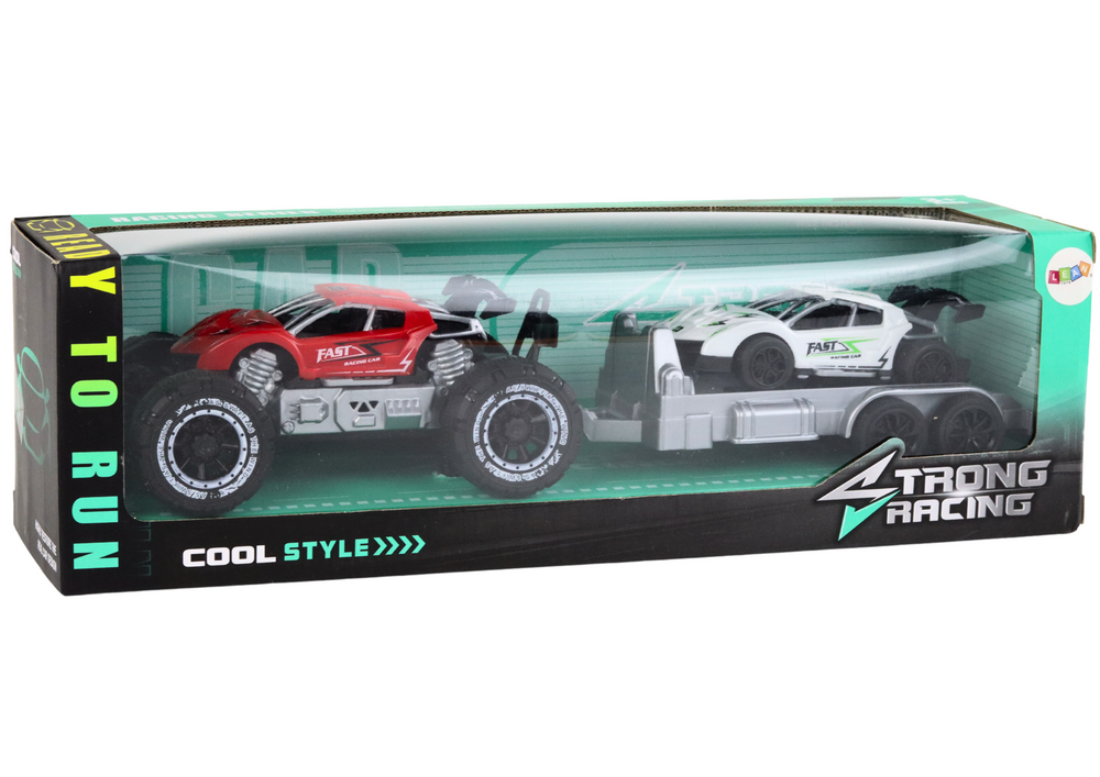 Auto Terenowe Czerwone Laweta Pojazd Sportowy Zestaw