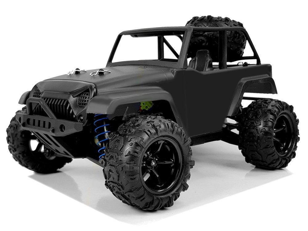 Terenowe wyprawy i moc adrenaliny to właśnie zapewnia zdalnie sterowany pojazd. Ten pojazd jest nie tylko dla dzieci, ale i dorośli skuszą się na zabawę. Pojazd osiąga nawet 40 km/h. Jeden z najszybszych modelów R/C. Doskonale radzi sobie zarówno na asfalcie, jak i kostce brukowej. Duże koła, zawieszenie, amortyzatory oraz terenowa konstrukcja to nie jedyne z zalet tego samochodu. Przedstawiony model wykonany jest w skali 1:18, dzięki czemu wygląda niesamowicie realnie.