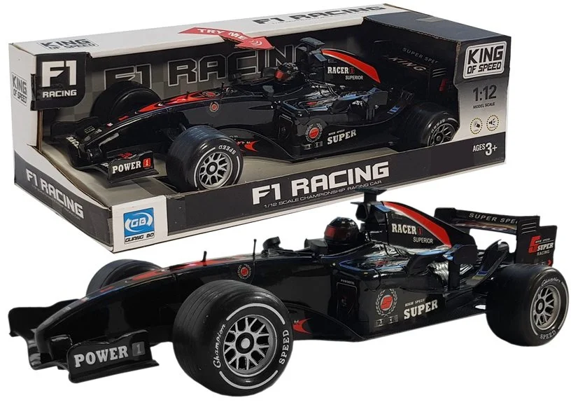 Wygląd auta jest jak z torów wyścigowych. Opływowy kształt i naklejki na bokach oraz lekka konstrukcja zabawki to tylko nieliczne z zalet produktu. Sprawiają, że wyścig urządzony z kolegami jest jedną z najlepszych zabaw. Wykonany w skali 1:12 pojazd jest imitacją prawdziwego modelu bolid z F1. Dzięki żywej kolorystyce i wiernemu oddaniu szczegółów, zabawa z tym samochodem, staje się jeszcze bardziej ciekawa. Miękkie, gumowe koła pojazdu gwarantują dużą przyczepność auta do podłoża. Aby uruchomić pojazd należy nacisnąć na głowę naszego kierowcy, po bokach bolidu są ulokowane diody ze światłami. Model posiada także efekty dźwiękowe.