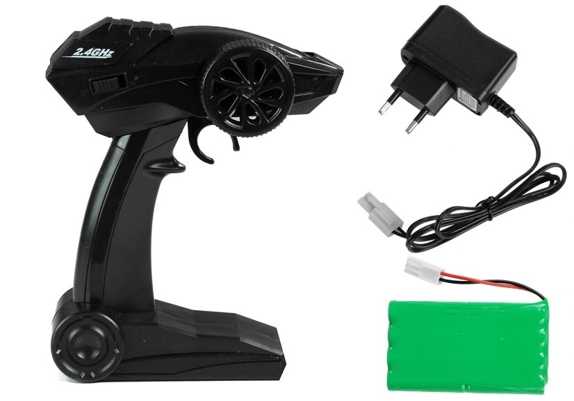 Pilot dołączony do wyścigowego zestawu odbiera na częstotliwości 2,4G, co redukuje wszelkie zakłócenia podczas zabawy. Wyposażony jest w pokrętło odpowiadające za poruszanie się pojazdu w prawo/lewo oraz dźwignię,dzięki której nasze auto może jechać do przodu/tyłu.