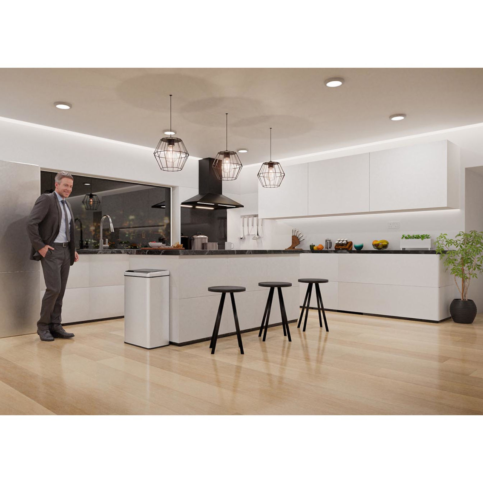 Wyróżnia go czujnik ruchu o zasięgu 20 cm, który umożliwia bezdotykowe otwieranie. Dzięki temu, wrzucanie odpadków staje się wygodne i higieniczne. Kosz zasilany jest 6 bateriami AA, co zapewnia mobilność i możliwość ustawienia go w dowolnym miejscu, niezależnie od dostępności gniazdka elektrycznego.