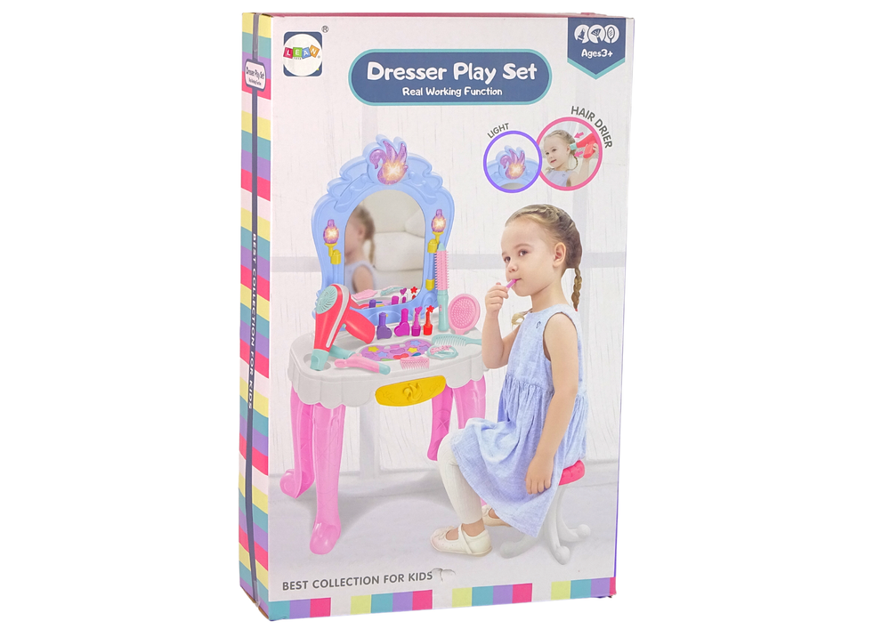 Interaktywne atrakcje dodatkowo urozmaicają zabawę – światełka LED i muzyka sprawią, że każda chwila przy toaletce będzie jeszcze bardziej wyjątkowa! Do zestawu dołączona jest suszarka z bezpiecznym nawiewem, która działa jak prawdziwa!