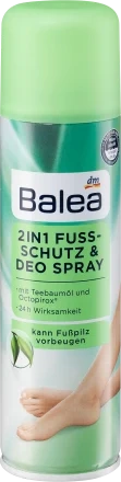 Balea 2w1 to innowacyjny dezodorant w sprayu, który zapewnia kompleksową ochronę i pielęgnację dla Twoich stóp. Dzięki antybakteryjnej formule z oktopiroxem i olejkiem z drzewa herbacianego, produkt skutecznie zapobiega tworzeniu się nieprzyjemnych zapachów i podrażnień skóry.