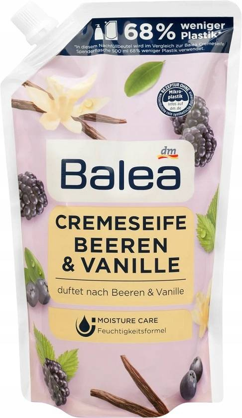 Kremowe mydło w płynie Balea Beeren & Vanille to doskonały wybór do delikatnego mycia rąk. Jego kremowa konsystencja sprawia, że skóra jest pielęgnowana przy każdym myciu. Dodatkowo, zachwyca świeżym zapachem jagód i wanilii, który umila codzienną higienę. To idealne mydło, które skutecznie oczyszcza dłonie, nie zawierając mikroplastików ani syntetycznych polimerów.