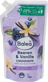 Balea Beeren & Vanille to wyjątkowe mydło kremowe, które łączy w sobie intensywną pielęgnację z zmysłowym doświadczeniem podczas codziennego mycia rąk. Bogata formuła z ekstraktem z owoców leśnych i wanilii nawilża i odżywia skórę, jednocześnie pozostawiając delikatny, długo utrzymujący się zapach. Produkt bez mikroplastiku.