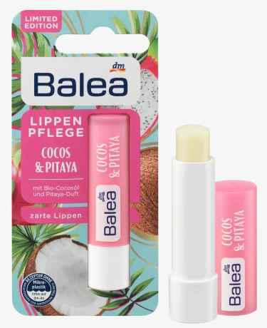 Balea Cocos & Pitaya to pomadka ochronna, która skutecznie pielęgnuje usta dzięki cennemu olejowi kokosowemu z ekologicznych upraw. Sprawia, że usta stają się miękkie i elastyczne. Dodatkowo, wyjątkowy zapach kokosa oraz smoczego owocu dostarcza przyjemnych doznań zmysłowych.