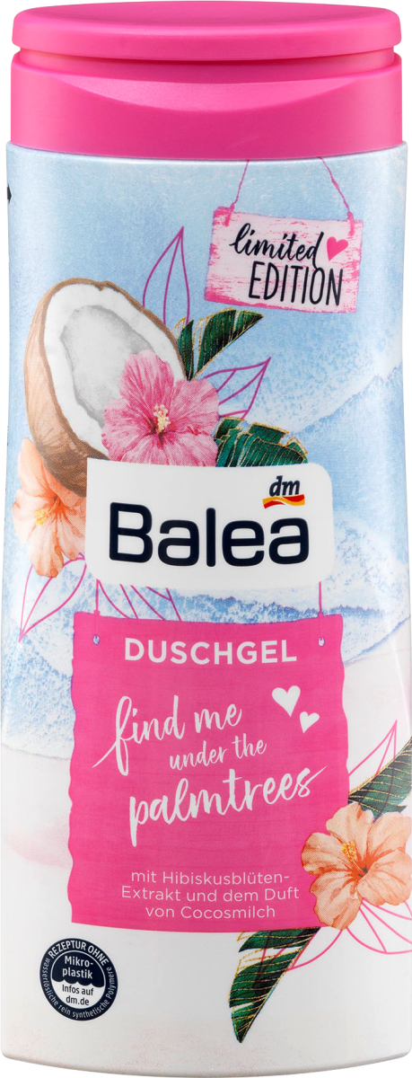 Odkryj wakacyjny klimat w swojej łazience z żelem pod prysznic Balea Find Me Under the Palmtrees. Jego czarujący zapach sprawi, że poczujesz się jak na tropikalnej plaży. Żel doskonale odżywia skórę i jest odpowiedni dla osób z wrażliwą skórą.